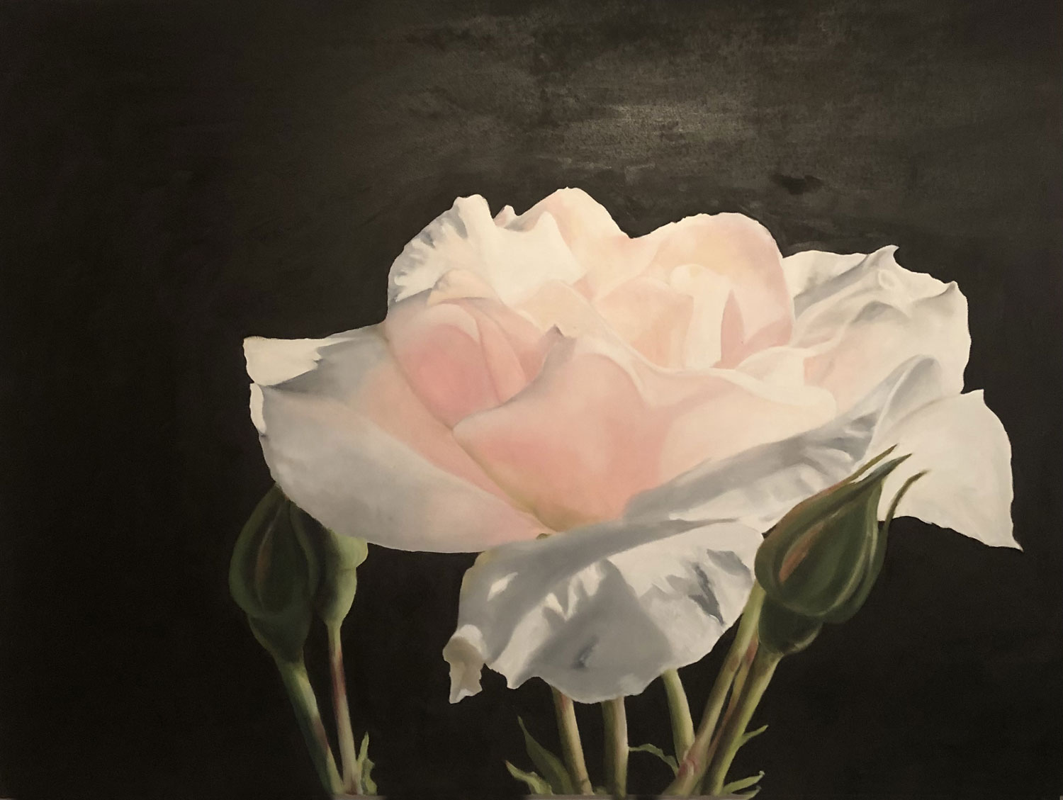 Hier ein paar Beispiele Lilie,2018, 100 x 100 cm, Öl auf Leinwand Rote Rose, 2020, 50 x 50 cm, Öl auf Leinwand Blumenstrauß,2015, 50 x 50 cm, Öl auf Leinwand Weiße Rose,2020, 75 x 100 cm, Öl auf Leinwand Weiße Rosen2018, 30 x 35 cm, Öl auf Leinwand